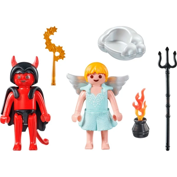 Die PLAYMOBIL-Figuren aus der Serie specialPlus kommen mit einem Plus an Zubehör – und damit auch mit besonders viel Spielspaß! Engelchen & Teufelchen symbolisieren den ewigen Widerstreit zwischen gut und Böse: Das Engelchen im Kleidchen mit Sternen-Zauberstab, das Teufelchen im rot-schwarzen Outfit mit Dreizack. Art.-Nr.: 1889004