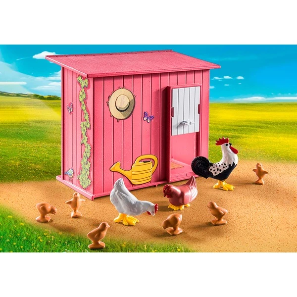 Natürlich haben auch Hühner ihren Platz in der Welt von PLAYMOBIL Country. In diesem Set ist ein komplettes Hühnerhaus mit hübschen Dekorationen und einer Hühnerfamilie mit Küken enthalten. Die gelegten Eier müssen jeden Tag eingesammelt werden – darum kümmert sich die ebenfalls enthaltene Figur mit dem Korb. Art.-Nr.: 1889114